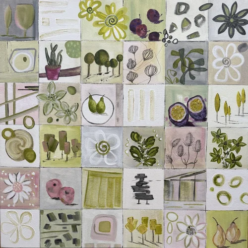 My vibrant flower art reflects an unleashing of a more playful side to my art. They refresh my creativity. Layers of patterns and colours invite you to peer through the flowers into a world of more blooming flora. The playful addition of the occasional bird adds a whimsical touch. They are a joyful blend of floral abundance and unexpected surprises.