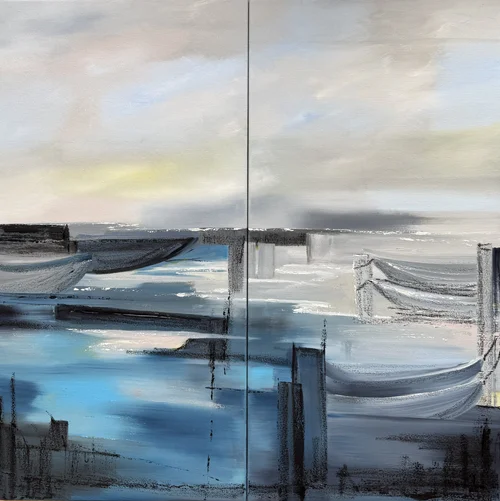 Winter days bring mists and calm to the Margate coast. Part 1 of my new series of oils exploring the abstraction of shapes, tones and curves to create a sense of calming movement.